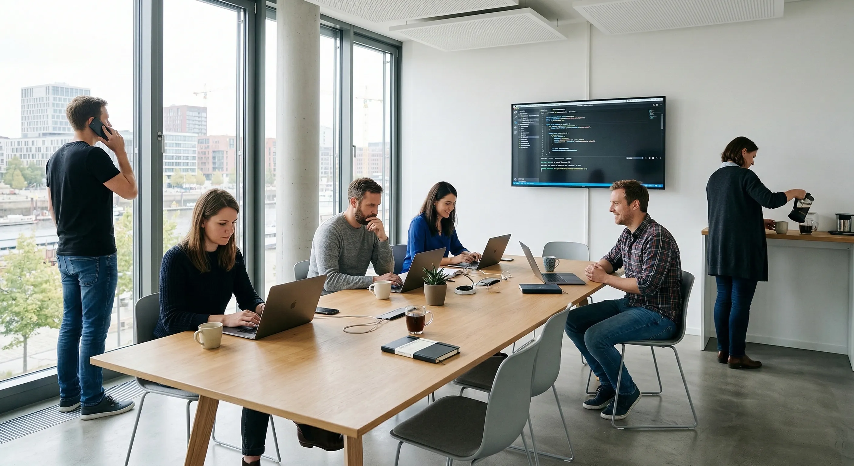 Intensive Hands-on Umsetzung — bei euch vor Ort oder in externen Räumen. Euer Team arbeitet gemeinsam an einem echten Projekt mit direktem Business-Value.